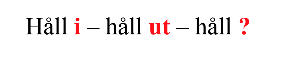Håll i – håll ut – håll ? Hjärnan väntar sig en partikel, en abstrakt betydelse, men i den svenska pandemis slogan följer istället ett substantiv med ett konkret innehåll.…
