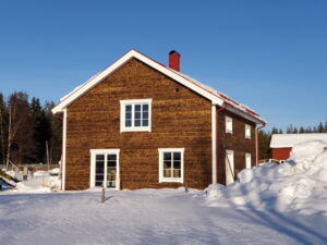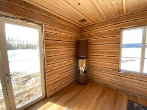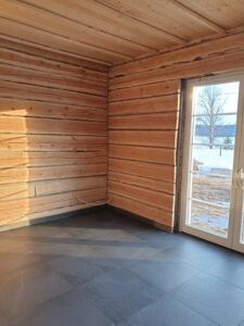 Just nu håller Matthias på att bygga ut deras gamla timmerhus till gästhus eller rättare sagt gästvilla.